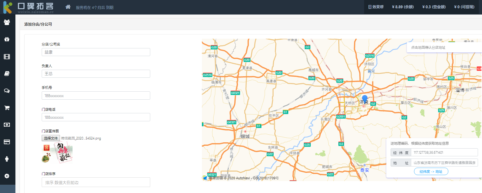 二、添加分店信息