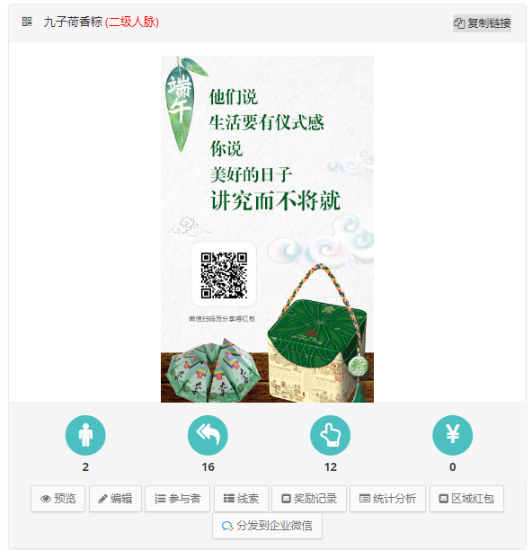 活动列表处可扫码转发至朋友、朋友圈、及企业微信,优惠券管理处可扫码进入领券页面,可查看领券人信息及核销情况